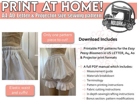Easiest Bloomers Sewing Pattern | Cottagecore | XS to 4XL | Vintage Bloomers / Downloadable PDF File and Tutorial Book