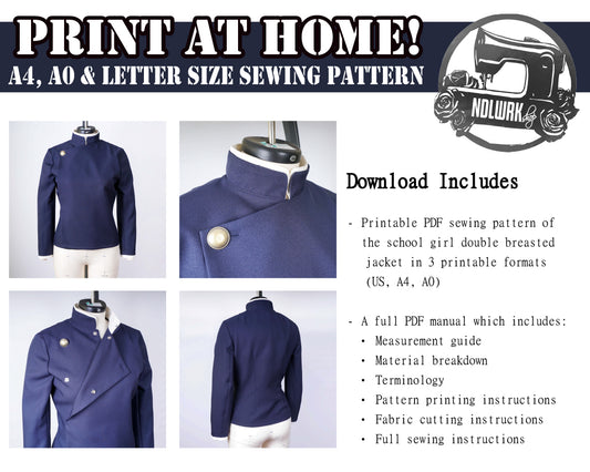 School Girl Double Breasted Jacket Sewing Pattern/Downloadable PDF File and Tutorial Book