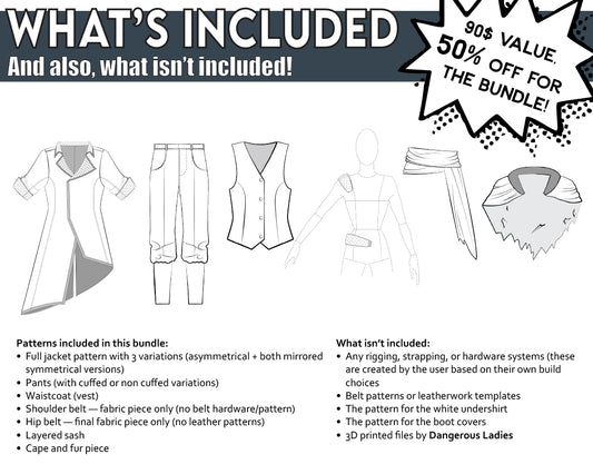 Verso Cosplay Sewing Pattern Bundle – Jacket, Vest, Pants, Cape, Sash & Belts + Six Tutorial books