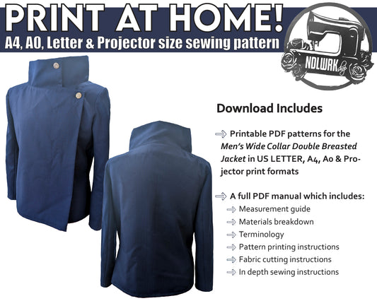 Men's Double Breasted Jacket Sewing Pattern/Downloadable PDF File and Tutorial Book