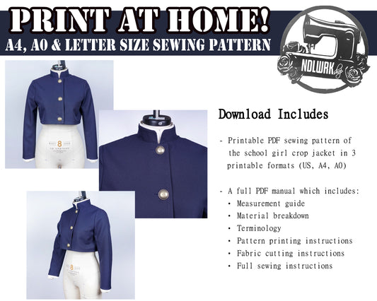 School Girl Crop Jacket Sewing Pattern/Downloadable PDF File and Tutorial Book