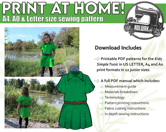 Junior Simple Tunic Sewing Pattern/Downloadable PDF File and Tutorial Book