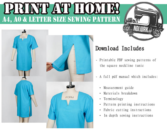 Square Neckline Tunic Sewing Pattern/Downloadable PDF and Tutorial Book