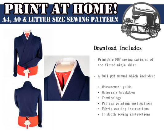 Fitted Ninja Shirt Sewing Pattern/Downloadable PDF File and Tutorial Book