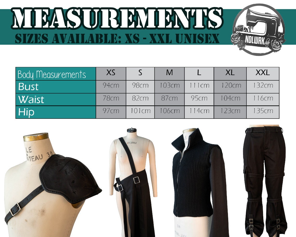 • Tutorial and patterns in 6 sizes (xs to xxl) for shirt, sleeve, skirt panel, pants and pauldron