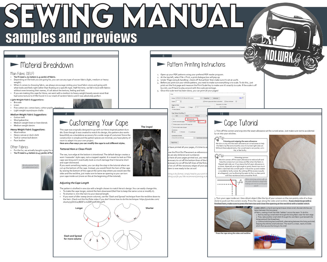 Cape Pattern for cosplay makers who want a simple, beginner-friendly base that delivers clean or distressed looks with ease. This shoulder cape attaches to any jacket using snap closures and includes a hand-sewn fur detail that adds texture and dimension.Β