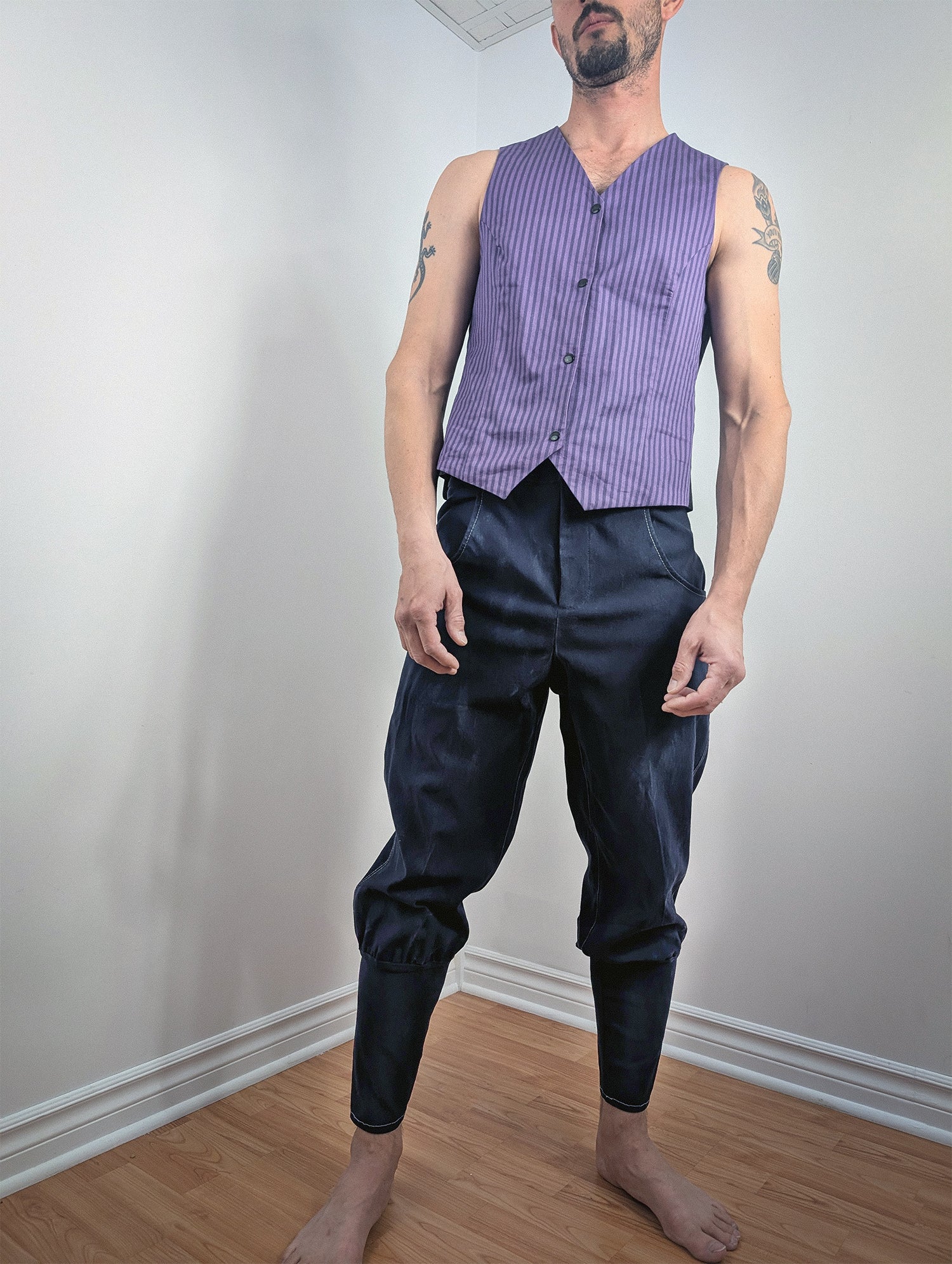 Create pants from Clair Obscur: Expedition 33 with this detailed cosplay sewing pattern. Designed for woven fabrics, it includes both a straight hem and a stretch cuff to keep pant legs smooth inside tall boots, plus deep pockets, a jean-style zipper fly, and topstitched seams.